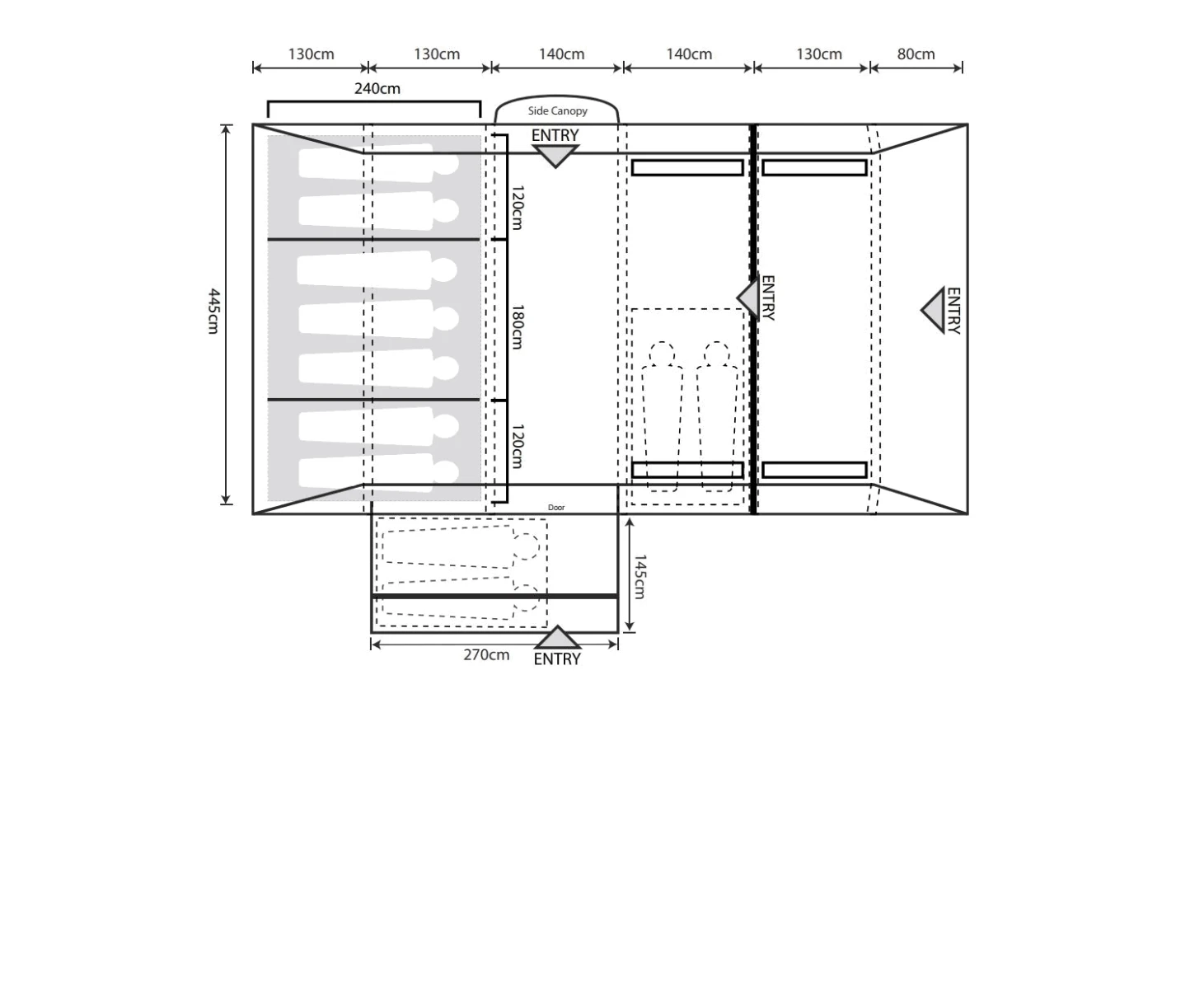 | Bedroom Dimensions (cm) | 420 * 240cm (with zipped dividers) |