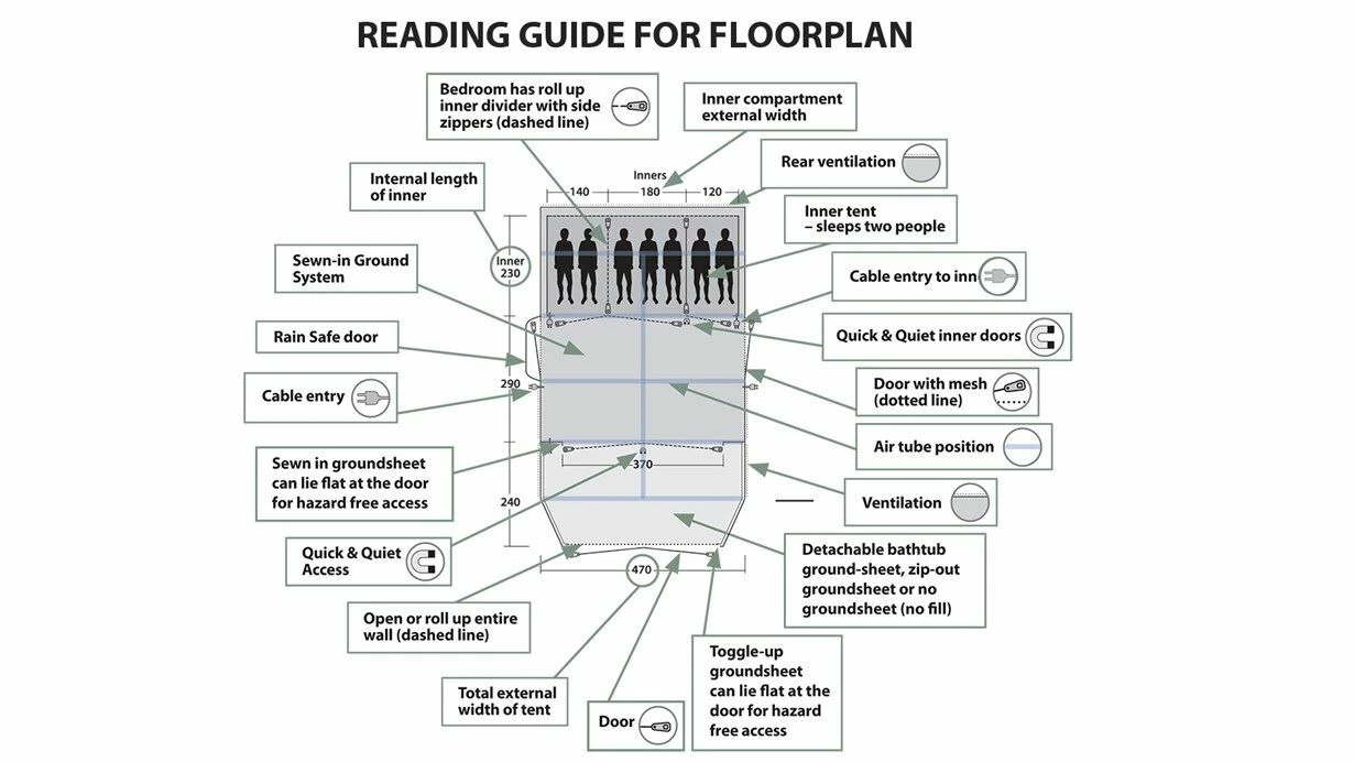 The Outwell Parkdale 6PA is a tent ideal for four to six people, such as families – the inflatable design allows for quick, simple pitching. A spacious design offers a three-zone design, with ample living space, sleeping space and a darkened Premier bedroom with mesh ventilation and with two zipped dividers. With quick and quiet access between the outer and inner zones. The Parkdale has great flexibility, with pre-angled air tubes creating excellent standing height throughout, with generous living space. With plentiful windows which allow in plenty of light.