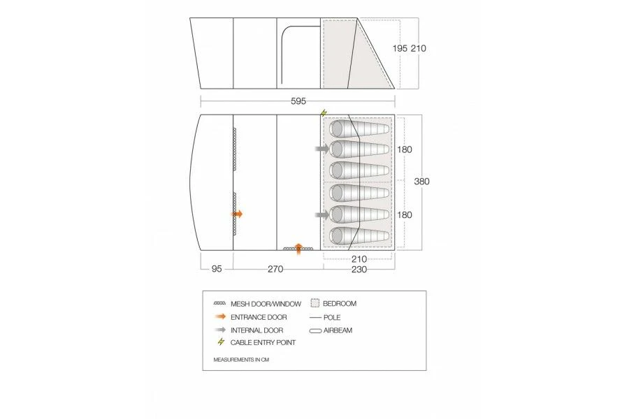 - TBS II Tension Band System – helps stabilise the tent in windier conditions, by creating a triangular structure inside the tent.