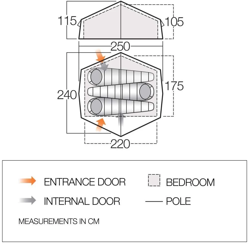 A fantastic three-berth tent with a compact pack size, ideal for those needing to sleep two to three people, with alloy poles, and a resilient 70 Denier Protex polyester fabric for great durability.